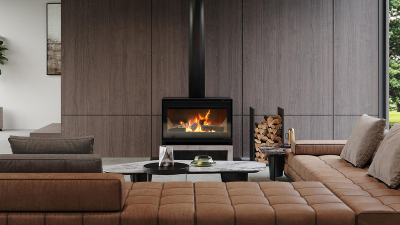 A modern take on a classic fire, this freestanding fireplace series boasts maximised flame-viewing and better home performance.